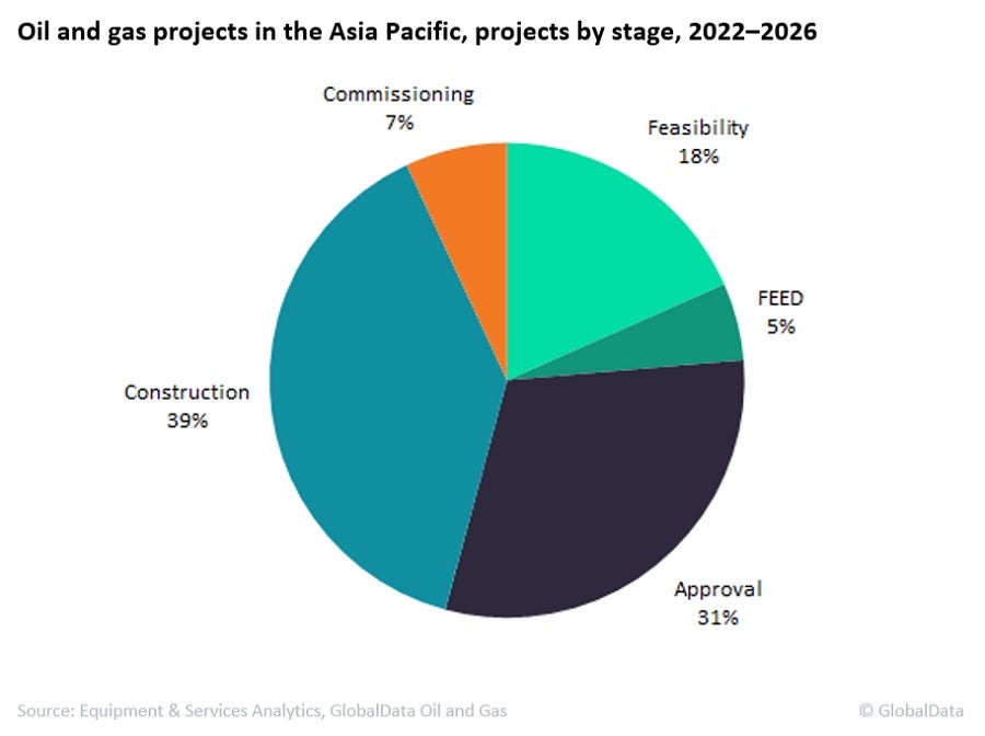 GlobalData’s latest report, ‘Asia-Pacific Oil and Gas Projects Outlook to 2026 – Development Stage, Capacity, Capex and Contractor Details of All New Build and Expansion Projects’ indicates that Asia-Pacific is expected to have 2,030 projects begin operations between now and 2026. Of these, 249 would be upstream projects, 506 would be midstream and 209 refineries. Petrochemicals would account for most of the projects, with 1,066 due to begin over the four-year period.
