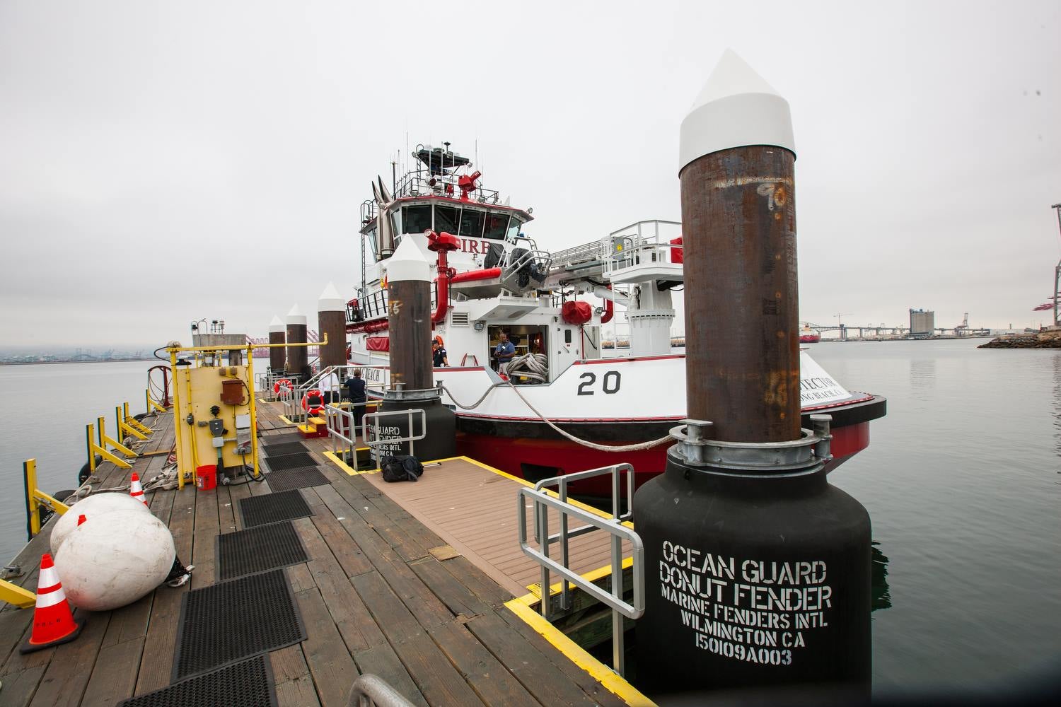 One of these projects is the Fireboat 15 Dock Upgrade at Pier F, Berth F202, at the Port of Long Beach in Long Beach, California, US. Operated by the City of Long Beach Fire Department, two fireboats used to protect port assets and provide safety to the area are berthed at a port fire station on Pier F. Due to increased post-9/11 safety concerns, assessment of the aging currently operated fireboats and the need for more advanced technology to handle larger container ships and port expansion, the Long Beach Harbor Commission requested that the fire department upgrade port fireboat facilities. This included the fireboat dock, which had to be upgraded to include two new, larger 108′ fireboats. Marine Fenders International was awarded the contract to provide fenders for the upgraded fireboat dock.