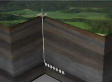 Shale is cracked by rigs that drill down thousands of feet. The rigs are able to turn 90° and drill horizontally to follow gas-rich streams. Once the hole is drilled, explosives are detonated to create a series of openings in pipes laid to keep the well open.A mixture of water and sand is then shot down at high pressure. When it spurts through the openings in the pipes, it shatters the surrounding rock and the gas is released. The process uses huge amounts of water, which is problematic in areas where water is scare. Drilling for shale can, according to the report, also contaminate drinking water as the chemicals used can poison water supplies.