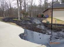 Here you can see the crude oil flowing down the street of the small town in the North Woods subdivision of Mayflower, Arkansas. People living in homes near the flow of oil have been evacuated until further notice.