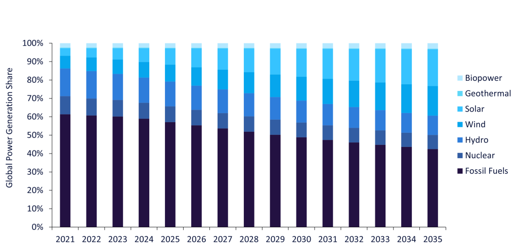 Global power generation mix, 2021-2035