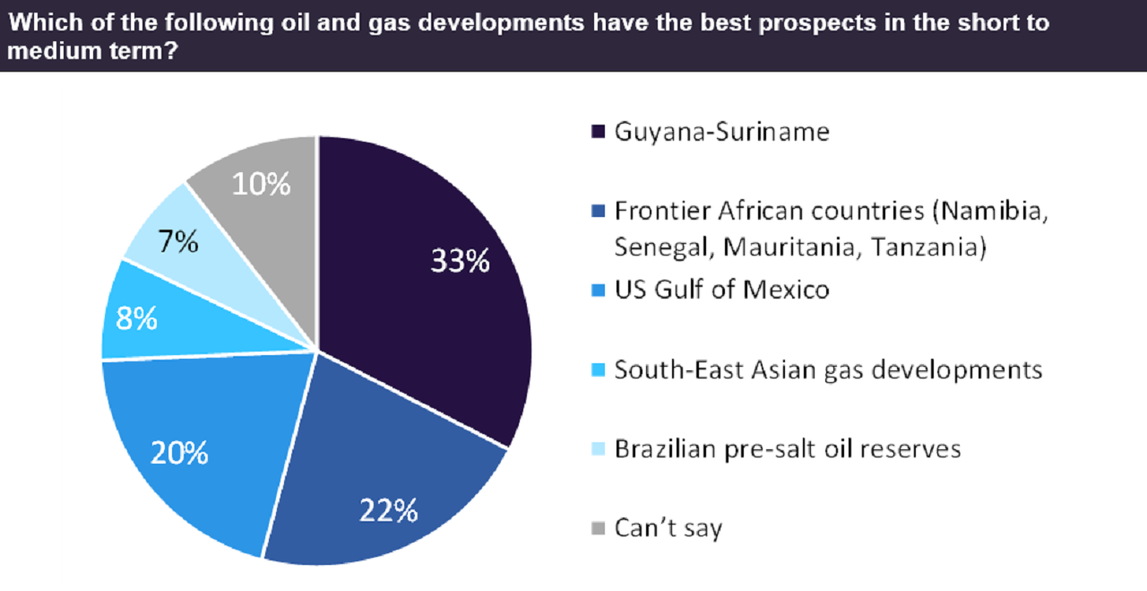 Roughly 20% of the respondents considered the US Gulf of Mexico as the best oil and gas prospect in the short to medium term.