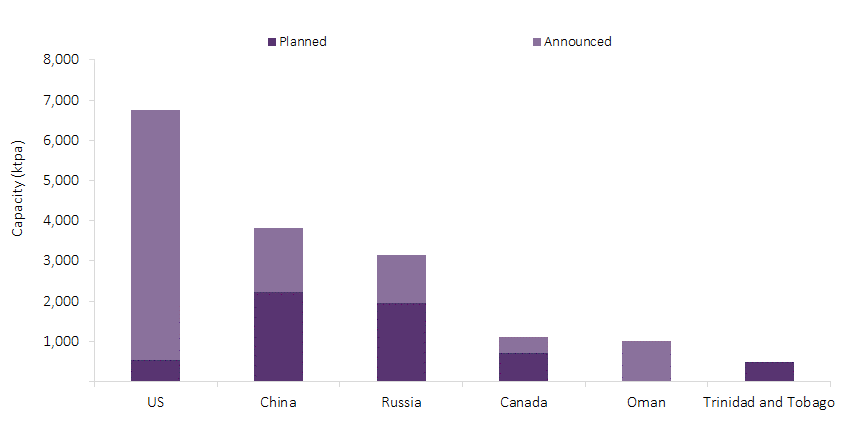 Among regions, North America is expected to have a capacity of 7,880 ktpa by 2023. Asia and the Former Soviet Union (FSU) follow with capacities of 3,810 ktpa and 3,230 ktpa, respectively, by 2023.