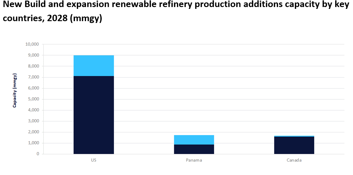 Panama follows the US with an estimated capacity addition of 1,733 million gallons per year by 2028 through the standalone Ciudad Dorada Renewable refinery.