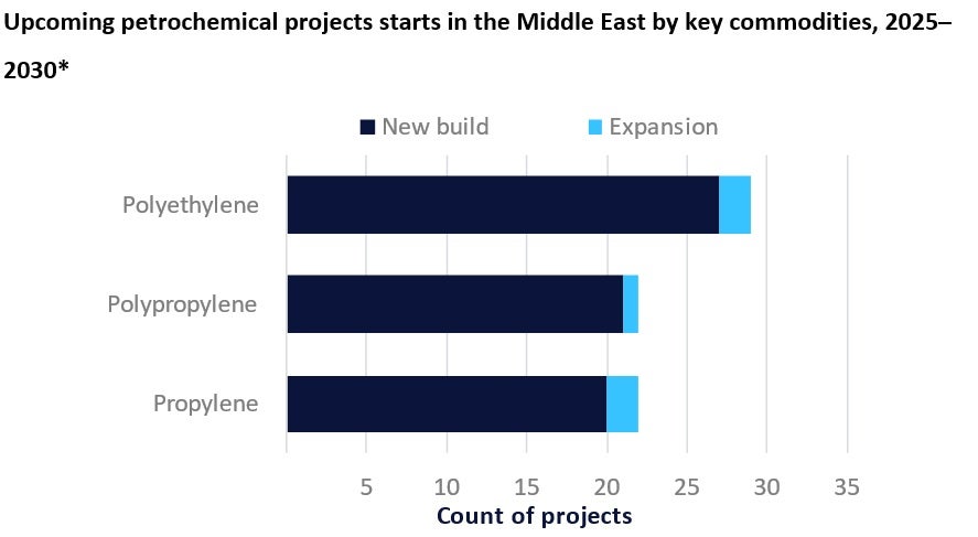 Polyethylene, polypropylene, and propylene are set to lead the upcoming petrochemical project starts in the Middle East by 2030, driven…