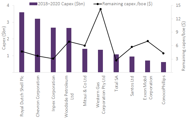 Top ten companies by capital expenditure into Australian upstream by 2020