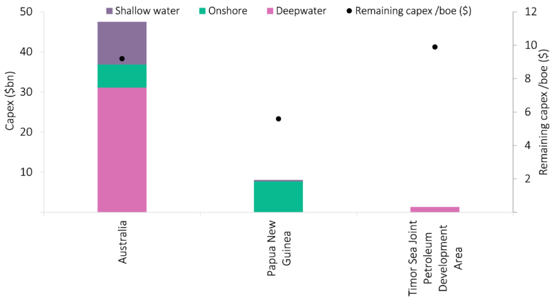 Timor Sea Joint Petroleum Development Area is expected to contribute about 2% to the total capex spending in Oceania between 2018 and 2025. Greater Sunrise is the only conventional gas deepwater field, with a capex for the eight year period of $1.4bn.
