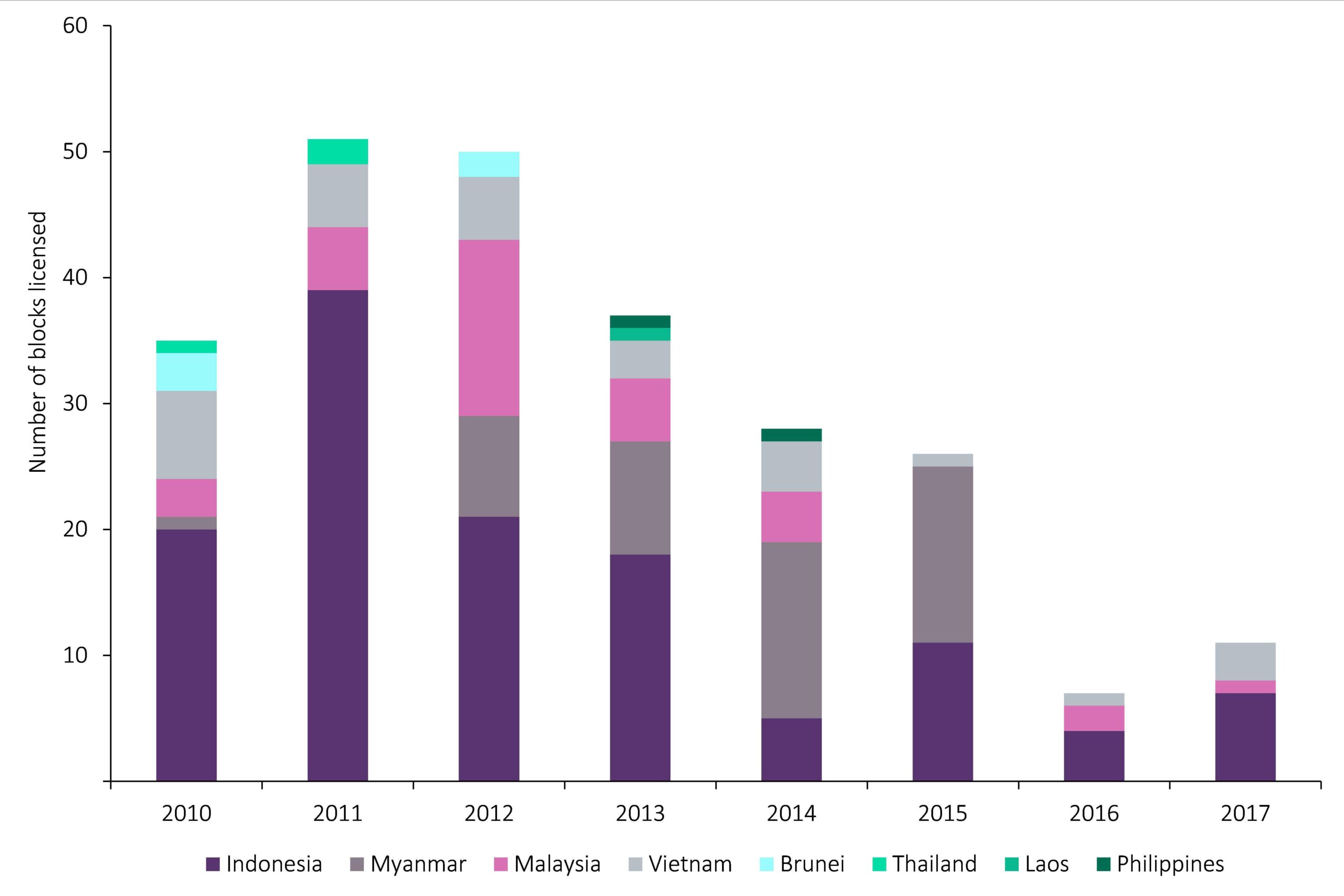 South East Asia – Licensed Blocks by Country, 2010–2017