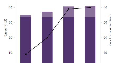 Turkey and Mexico together contribute about 2.2tcf, 6.4% of global LNG regasification capacity. An announced terminal in Turkey is expected to add a capacity of 0.2tcf during 2018 – 2021.