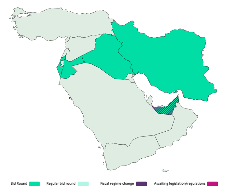Iran’s efforts to attract investment in its upstream sector through the Iran Petroleum Contract continue, while Iraq has adopted a relatively flexible approach for its bid round closing in May, asking bidders to propose contract models. Israel is also planning a second offshore round to follow its round held in 2017.