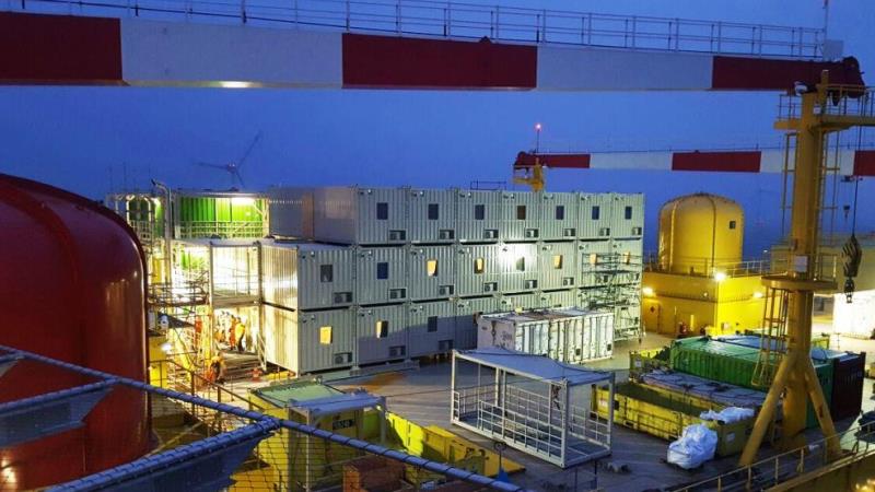 ELA Container has already gained diverse experience in the Offshore-Wind and Offshore Oil & Gas Industry. Whether on pontoons, transformer platforms, rigs or supply vessels, ELA Container is the ideal partner, offering tailor-made concepts for all requirements in the form of Living Quarters, Offices, Dining Rooms, Galleys, Laundries, Recreation or Locker Rooms and all types of Carrying Units.