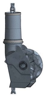 The geometry created in Autodesk Inventor, was imported into ANSYS DesignModeler for de-featuring and mesh preparation. The geometry featured the original design and the retrofitted gypsy wheel pin. During the course of the project the chain was also added into the FE model. The chain was modelled from its connection at the tensioner winch to the fairlead (about 40 links), and down through the spindle to the gypsy wheel, finishing at the last chain link that would possibly contact the fairlead skirt.