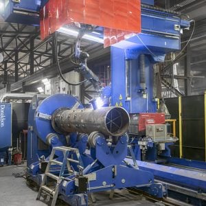 A floating foundation or structure means that the wind tower base is kept in place with the help of long cables that are attached to the seafloor. This makes it possible to put wind towers far out, even to the depths of 200-300 m of water. The offshore wind turbine foundation design is different but has similarities to the technical structures that are used in submarines, shipbuilding, oil rigs, and wind tower manufacturing. By combining different PEMA welding automation solutions, it’s possible to build these huge structures with the necessary preciseness.