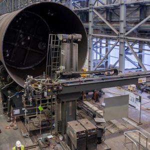 Foundations for floating offshore wind turbines can be built in different ways. Three common styles of floating foundation structures are spar, tension leg platform, and semisubmersible. Spar foundation structure can be built by combining different PEMA welding solutions such as an assembly station, flange fitting, PEMA Column & Boom for longitudinal and circular welding, milling machine, and WS2 welding platform.