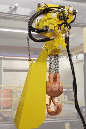 This is combined with 100% duty rating (ie no downtime), based upon a modern design with lube-free operation and minimum maintenance requirements. An integrated emergency stop is incorporated in the main power supply for hoists up to 20t capacity, and all units are insensitive to dust, humidity and otherwise adverse or hazardous operating conditions.