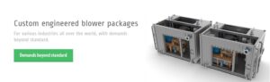 • High-spec blower packages for high-temperature, explosive, corrosive, abrasive or elevated pressures, handled with single-stage, barrel design blowers or multi-stage packages depending on application