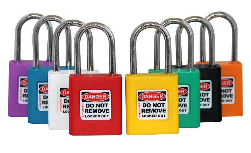 The locks are available in five different colours, and can be keyed different, keyed alike and/or master keyed. The Cirlock unique six-pin cylinder also ensures a very large number of combinations. Danger Do Not Remove and ‘belongs to’ labels are standard on locks, and/or they can be supplied with Out of Service, company logo, personal names or photo ID or other, as required.