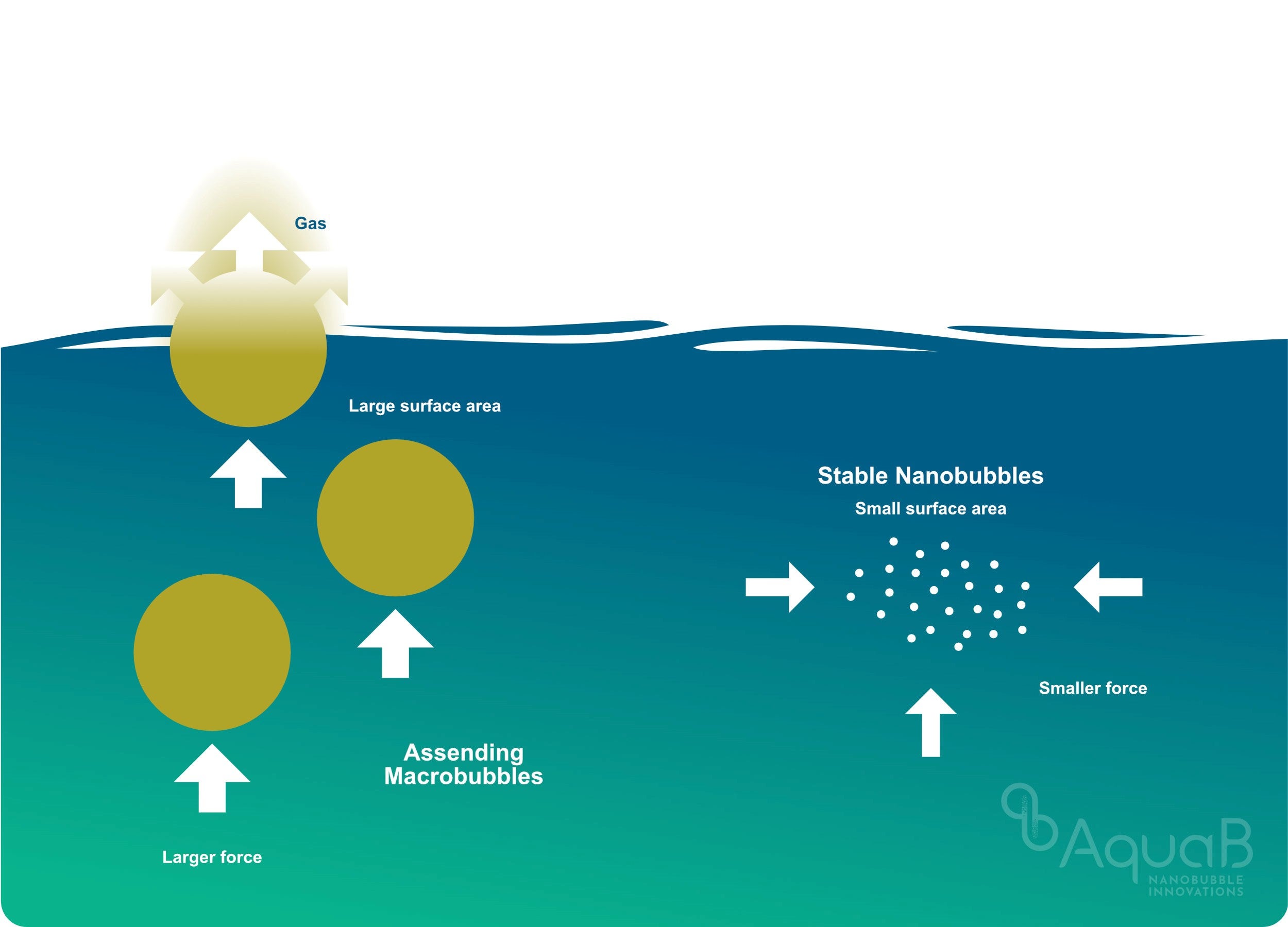 - Nanobubbles that are less than 50mm–100nm in size provide more than 200 times the interfacial surface area when compared to typical microbubbles.