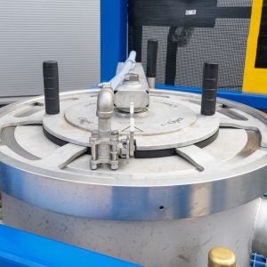 The Diatomaceous Earth will be dosed automatically from the dosing skid. This pneumatically operated system has two tanks with each one a big bag of D.E. filter aid. The filter aid will be quickly transported to the injector manifold at the mixing skid via a 2in hose for dust-free dosing and mixing.