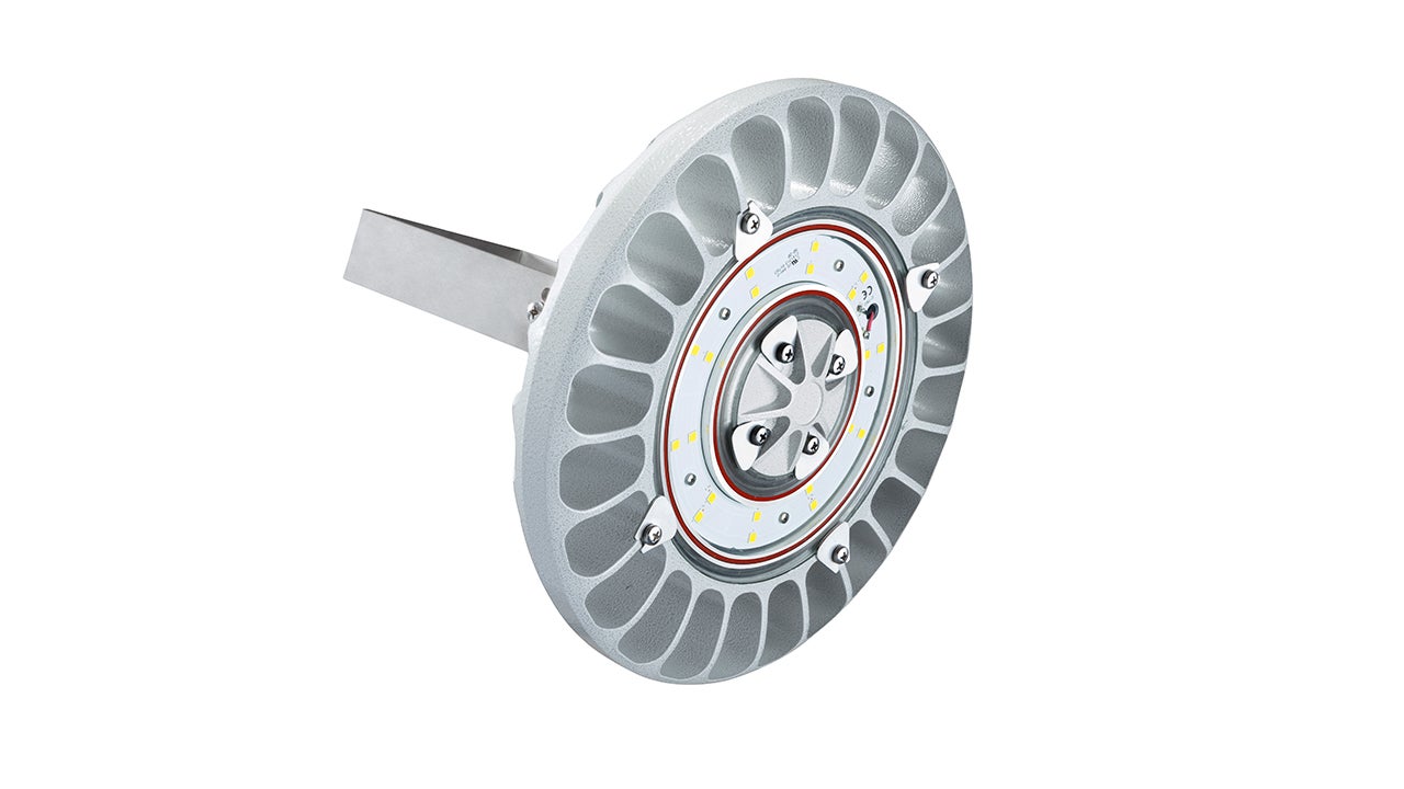 FLOWEX series high bay explosion-proof LED lighting fixtures combine the constant lighting power of 151 l/W real with extreme lightness, ease of installation and versatility for any type of certified environment.