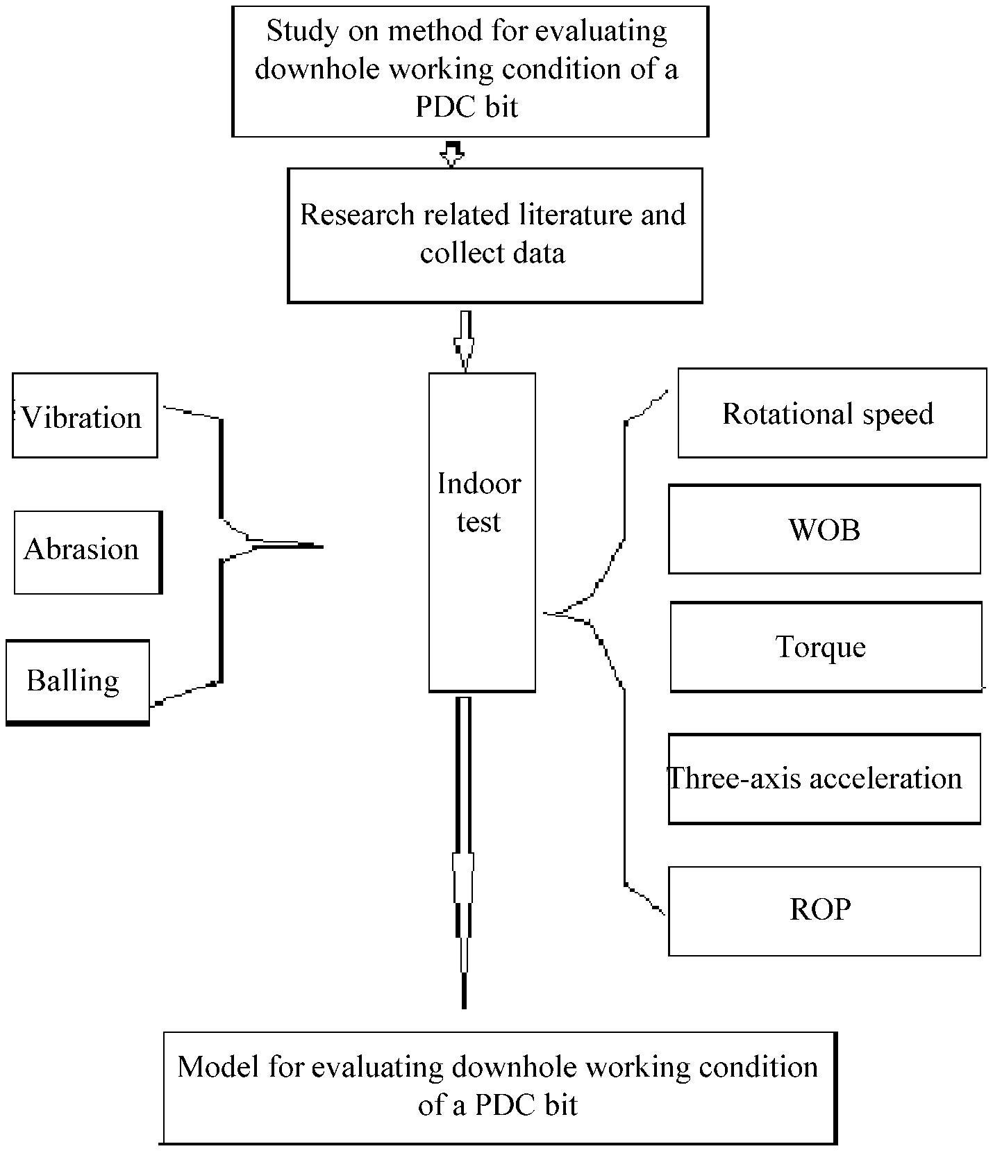 A recently granted patent (Publication Number: US11959375B2) discloses a method for evaluating the downhole working condition of a polycrystalline diamond compact (PDC) bit used in drilling operations. The method involves conducting indoor tests using the PDC bit on different full-sized cores with varying degrees of abrasion and balling under specific weight on bit (WOB) and rotational speed conditions. The data obtained from these tests is then used to enhance an existing prediction model and evaluation method to assess the PDC bit's performance in real-time by monitoring parameters such as WOB, rotational speed, torque, rate of penetration (ROP), and vibration severity. The test setup includes an acceleration acquisition system, a WOB-torque-displacement acquisition system, and a hydraulic system connected to the PDC bit, with the core fixed on a rotary table below the bit.