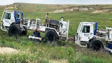 Vibroseis trucks, also called as thumper trucks, were contracted by Allied to perform the 3D seismic shoot.