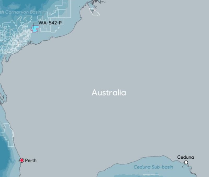 Located west of the recent Dorado oil discovery, WA-542-P block covers 4815k2m and is about 100km from the Australian coast. The water depth at this block ranges from 80m to 350m.