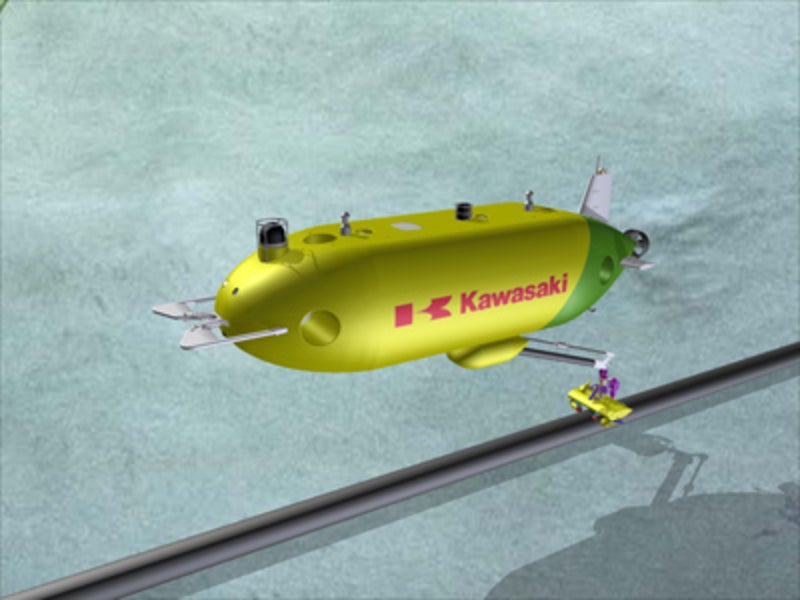 Kawasaki has been developing an AUV with a robot arm following an increasing demand for pipeline maintenance in offshore oil and gas fields.