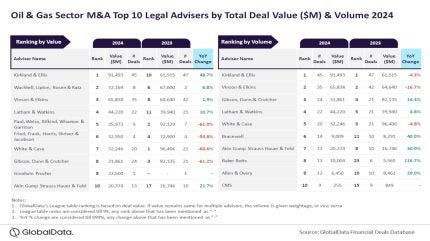 Kirkland and Ellis secured the top position as the leading mergers and acquisitions (M&A) legal adviser in the oil and gas sector in 2024, in terms of both deal value and volume, according to GlobalData, a data and analytics company.