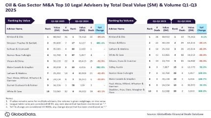 Kirkland & Ellis has emerged as the top mergers and acquisitions (M&A) legal adviser in the oil and gas sector for the first three quarters of 2025 (Q1–Q3 2025) by value and volume, according to GlobalData, a data and analytics company.