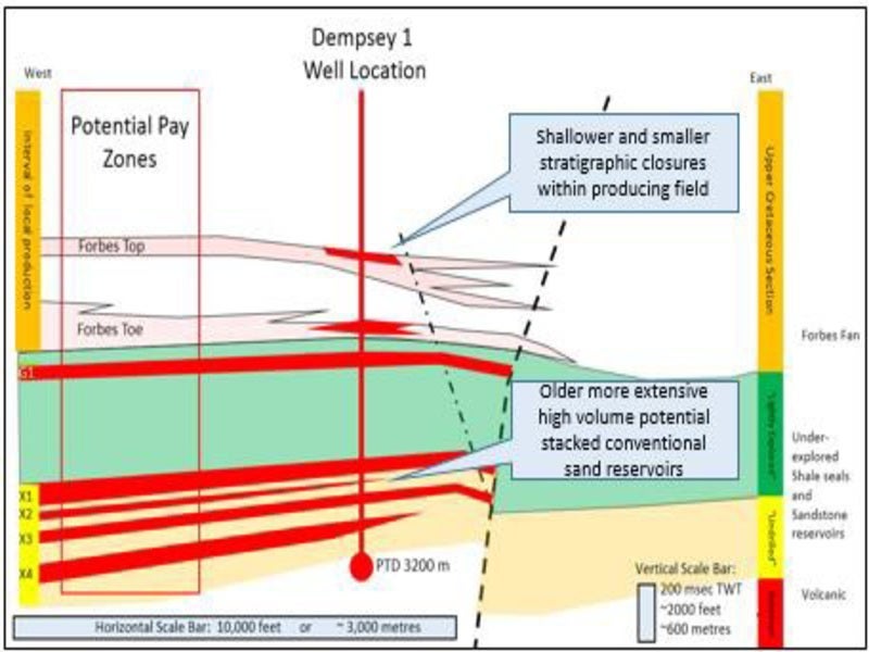 Image: Cross section through Proposed Dempsey 1 well. Photo: courtesy of Empyrean Energy.