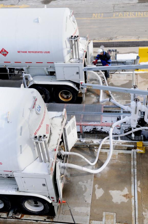 Image: A tanker truck will be used to transport the LNG to New England utilities. Photo: courtesy of GDF Suez Gas.
