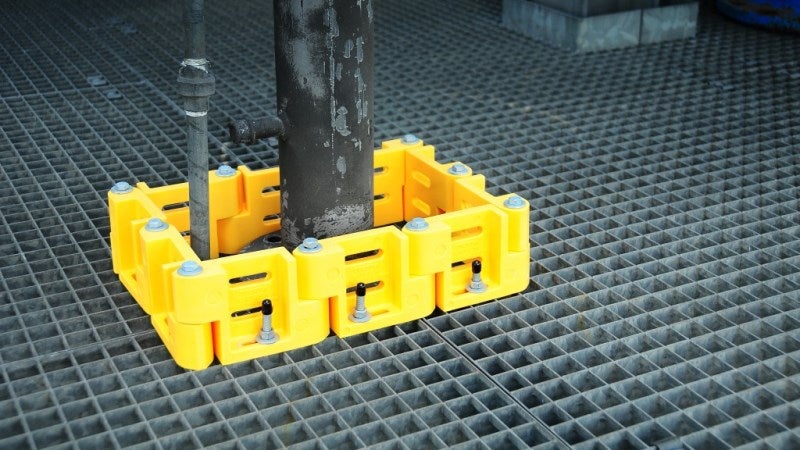 Faster than welded banding solutions and less hassle than using resin on oversized piping, Cablesafe toe boards neatly enclose field cut penetrations and provide a uniform, finished appearance without the need for scaffolding.