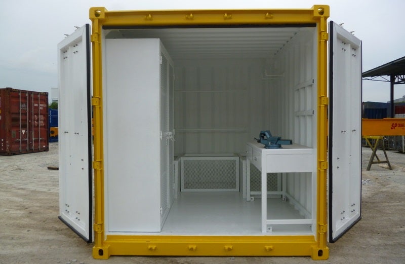 - A wide range of fit-out options and customisation available, including shelves, cabinets, tool racks, work benches, bench vices, tool walls and heavy-duty hooks