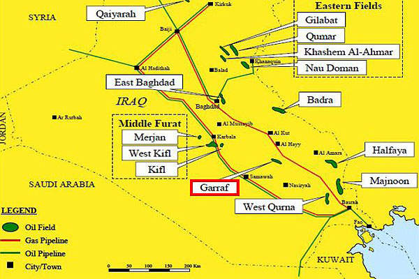 Garraf oil field is located in the province of Thi Qar, approximately 5km north-west of Al-Refaei city and 85km north of the city of Nasiriya.