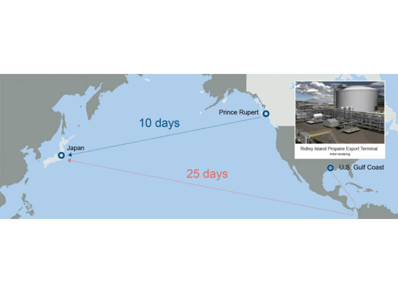 The export terminal is the first of its kind to be developed on the west coast of Canada. It has a storage capacity of approximately 96,000m³ and can ship 1.2Mt of propane per year.
